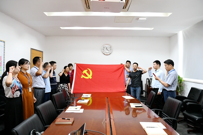 接著,在劉建華書記帶領(lǐng)下,大家五指攥拳,重溫入黨誓詞。