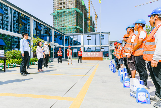 炎炎夏日送清涼,絲絲關(guān)懷暖人心。持續(xù)高溫悶熱天氣,給堅守一線工人帶來了嚴(yán)峻“烤”驗,也時刻牽動著公司領(lǐng)導(dǎo)的心。8月10日上午,城發(fā)公司董事長、總經(jīng)理李蘭霞,總經(jīng)理助理陸永軍、張驥一行對公司在建項目一線施工人員和明日鄰里中心物業(yè)人員開展防暑降溫送清涼慰問活動,為奮戰(zhàn)在高溫一線的勞動者們送上一份清涼、一份關(guān)懷。