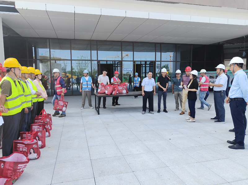 在青年公寓慰問現(xiàn)場,李蘭霞詳細了解項目進展情況、高溫作息時間和生活情況,貼心地為他們送上防暑降溫用品,向他們不畏高溫,冒著酷暑堅守崗位表示慰問和感謝,并反復叮囑各項目部要嚴格落實好防暑降溫工作,確保安全度夏。