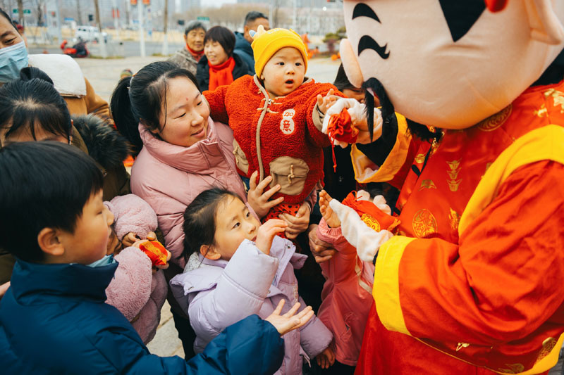 除了精彩絕倫的舞龍舞獅表演,活動現(xiàn)場還邀請了“財神爺”巡游。“財神爺”一路走街串巷,為街區(qū)里的商戶送去新春的美好祝福,祝愿他們新的一年生意紅火、財源廣進。同時,“財神爺”還向市民和游客發(fā)放福袋,大家紛紛上前領取,希望沾沾財氣,收獲滿滿的好運,現(xiàn)場一片歡樂祥和的景象。
