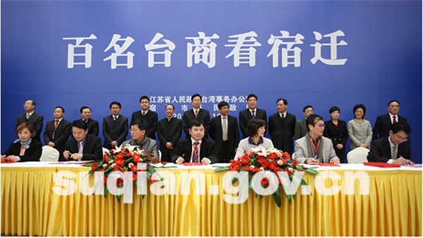 在宿遷投資環(huán)境推介會上還隆重舉行了項(xiàng)目簽約儀式。經(jīng)過前期深入溝通和洽談,此次“百名臺商看宿遷”活動(dòng)取得了一批可喜的項(xiàng)目合作成果,宿豫區(qū)、宿城區(qū)、宿遷經(jīng)濟(jì)開發(fā)區(qū)和市有關(guān)部門與臺灣島內(nèi)企業(yè)共達(dá)成13個(gè)項(xiàng)目投資意向,協(xié)議總投資達(dá)114.4億元,涉及新能源、新材料、軟件服務(wù)外包、機(jī)械制造、環(huán)??萍肌㈦娮?、食品等多個(gè)領(lǐng)域。