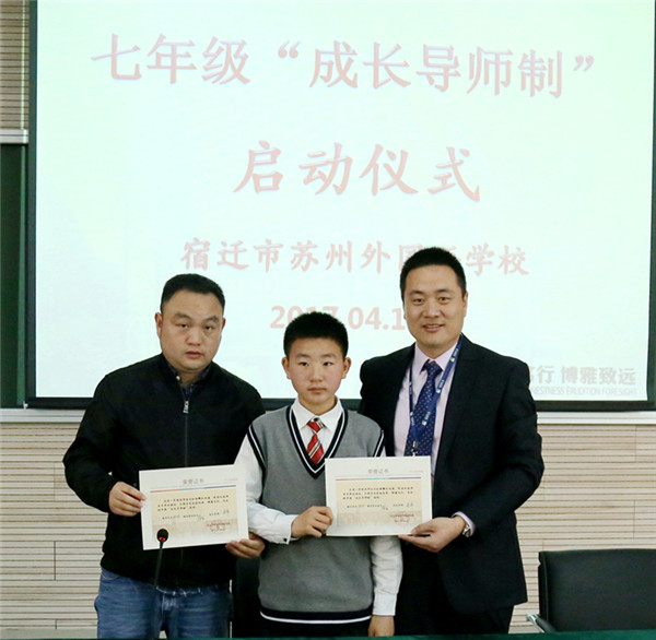 近日,宿遷市蘇州外國(guó)語(yǔ)學(xué)校七年級(jí)16位孩子和他們的家長(zhǎng)監(jiān)護(hù)人還有他們新認(rèn)的“干爹”“干媽”齊聚學(xué)校階梯教室,舉行隆重的簽約儀式。這些“干爹”“干媽”是學(xué)校給首批孩子們配的成長(zhǎng)導(dǎo)師,每位教師與一個(gè)孩子結(jié)對(duì),全方位關(guān)心孩子的成長(zhǎng),陪伴孩子們一起度過(guò)快樂而充實(shí)的初中生活,力求“個(gè)個(gè)進(jìn)步,人人成星”。“成長(zhǎng)導(dǎo)師制”這種親情化、個(gè)性化、人本化的育人模式,是宿蘇外實(shí)施素質(zhì)教育,提升教育核心競(jìng)爭(zhēng)力的需要;是宿蘇外服務(wù)家長(zhǎng),擴(kuò)大教育品牌影響力的需要;是宿蘇外回報(bào)社會(huì),落實(shí)“兩聚一高”,建設(shè)和諧社會(huì)的需要。